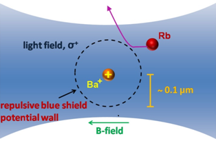 This project is aimed at controlling the cold collision between an ultracold Rb atom and a trapped Ba+ ion. During the collision a laser excites the Rb atom to a Rydberg Stark level which is strongly repelled from the ion. In this way the ion is effectively surrounded by a hard potential wall that the atom cannot cross. Once the atom leaves the interaction area, it is de-excited back in an adiabatic way to its original level. By controlling the laser power and the laser frequency, as well as by addressing different Rydberg states, the properties of this ‘shielding’ can be widely tuned.